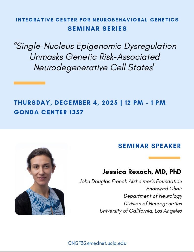ICNG Seminar: “Single-Nucleus Epigenomic Dysregulation Unmasks Genetic Risk-Associated Neurodegenerative Cell States”